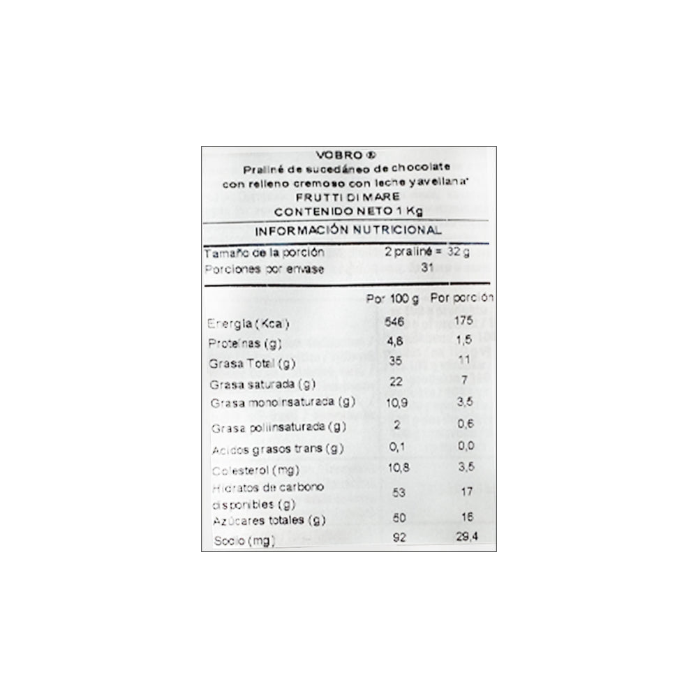 Bolsa Bombones Frutti di mare hazelnut milk 1 Kg