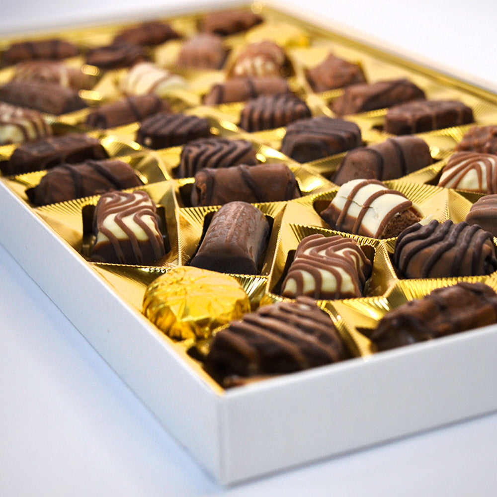 Sumérgete en el exquisito mundo del chocolate premium con la selección de bombones surtidos de Maître Truffout. Este elegante estuche de pralinés combina los más finos chocolates con rellenos cremosos y sabores irresistibles, perfectos para los amantes del chocolate suizo de alta calidad.