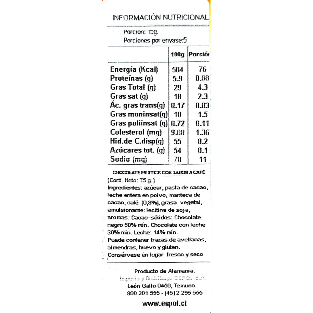Exquisitos Chocolate Sticks Maitre Truffout sabor café, una sublime fusión de chocolate negro relleno con crema de café intenso para los verdaderos conocedores del sabor. Estos bastones de chocolate premium alemán, con 75g de placer artesanal, combinan la robustez del café con la suavidad del chocolate dark en cada bocado. Perfectos para acompañar tus momentos de café o como indulgente snack gourmet, estos chocolate sticks ofrecen una experiencia única
